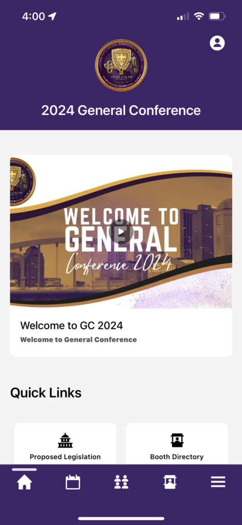- Once you enter that code, you will have full access to the 2024 General Conference event on the AME Meetings app. Use the icons across the bottom to access news, announcements and important documents.
